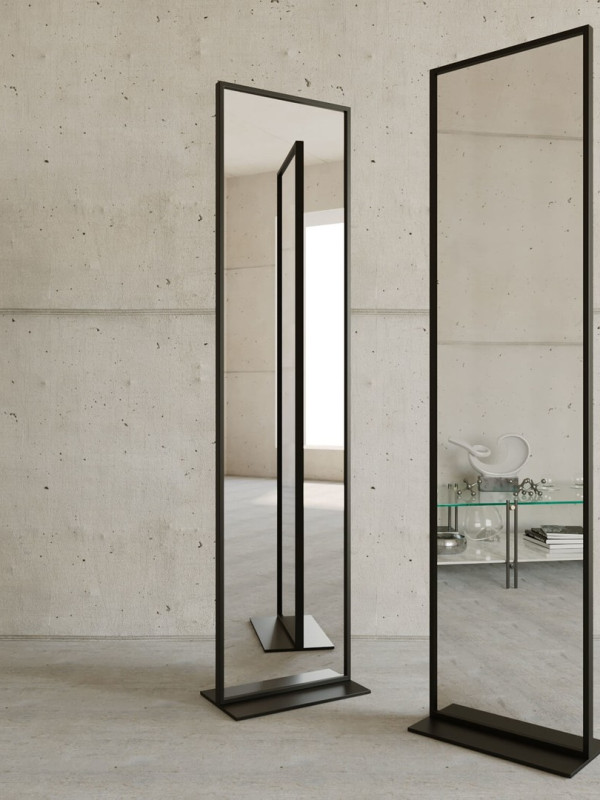 Дизайнерское напольное двухстороннее зеркало Glass Memory Ablestar ll в металлической раме черного цвета в Домодедово