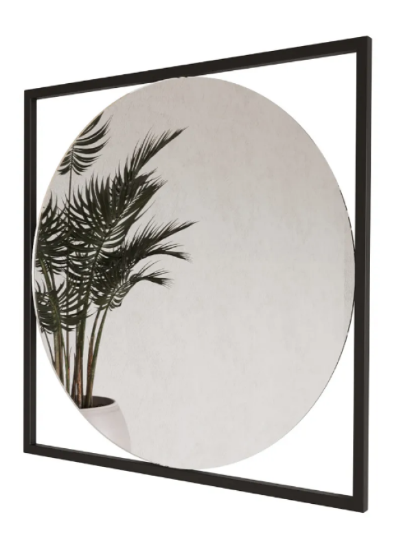 Дизайнерское настенное зеркало Glass Memory Image в металлической раме черного цвета 1040*1040 в Домодедово